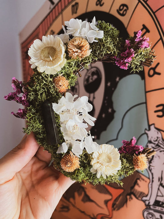 Corona Sarasvati (Piedra luna y cuarzo blanco)