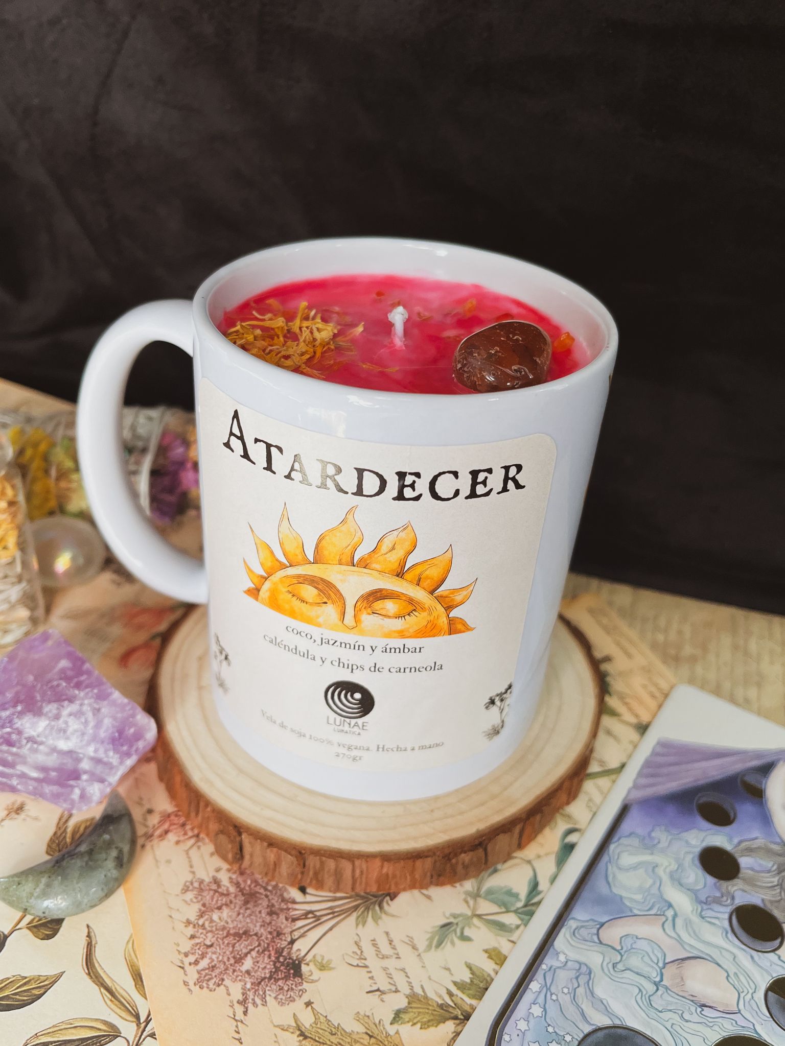 Una vela que captura la magia de los atardeceres de verano, esos momentos en los que el cielo se tiñe de colores cálidos y la brisa acaricia suavemente la piel.