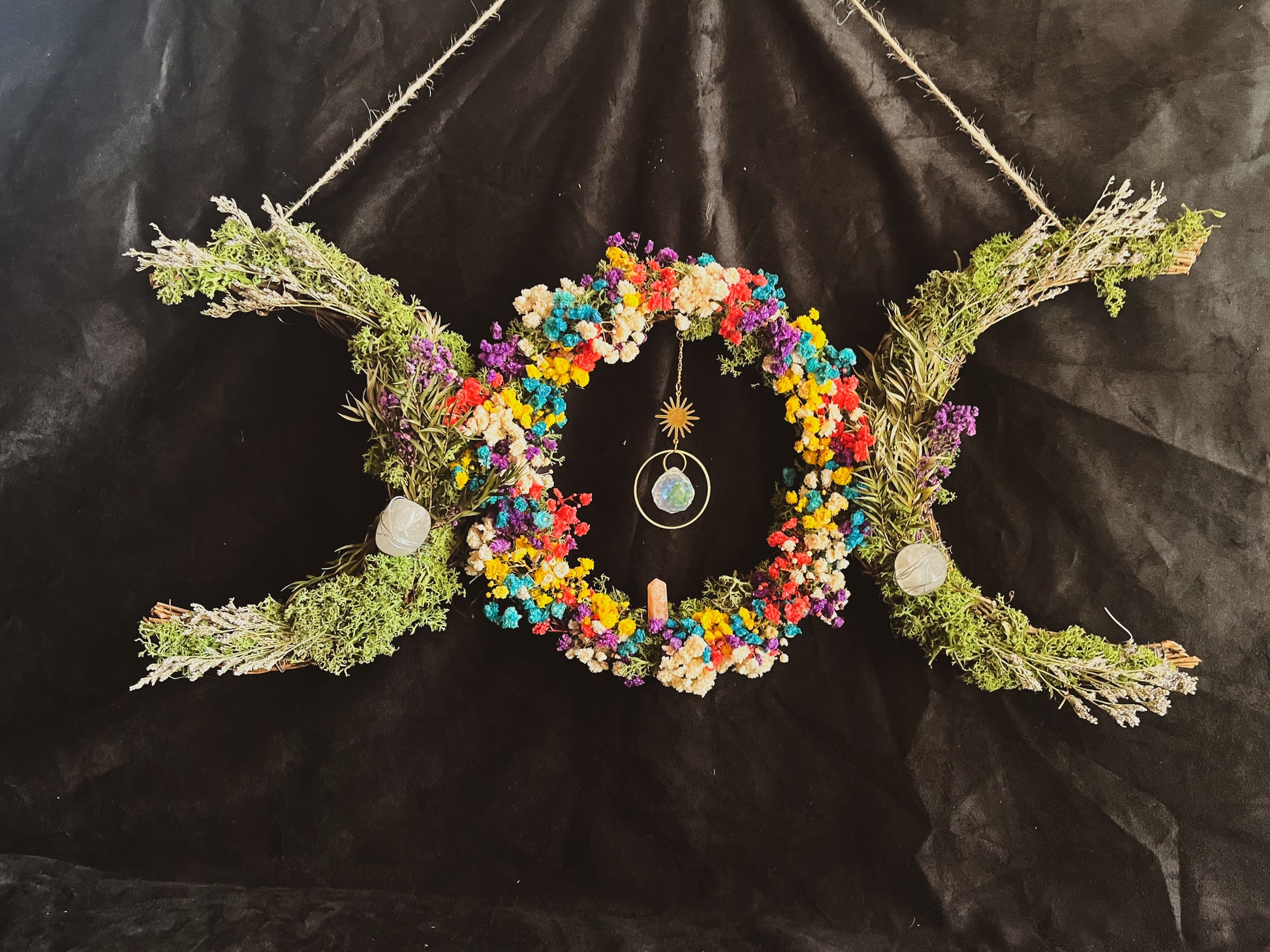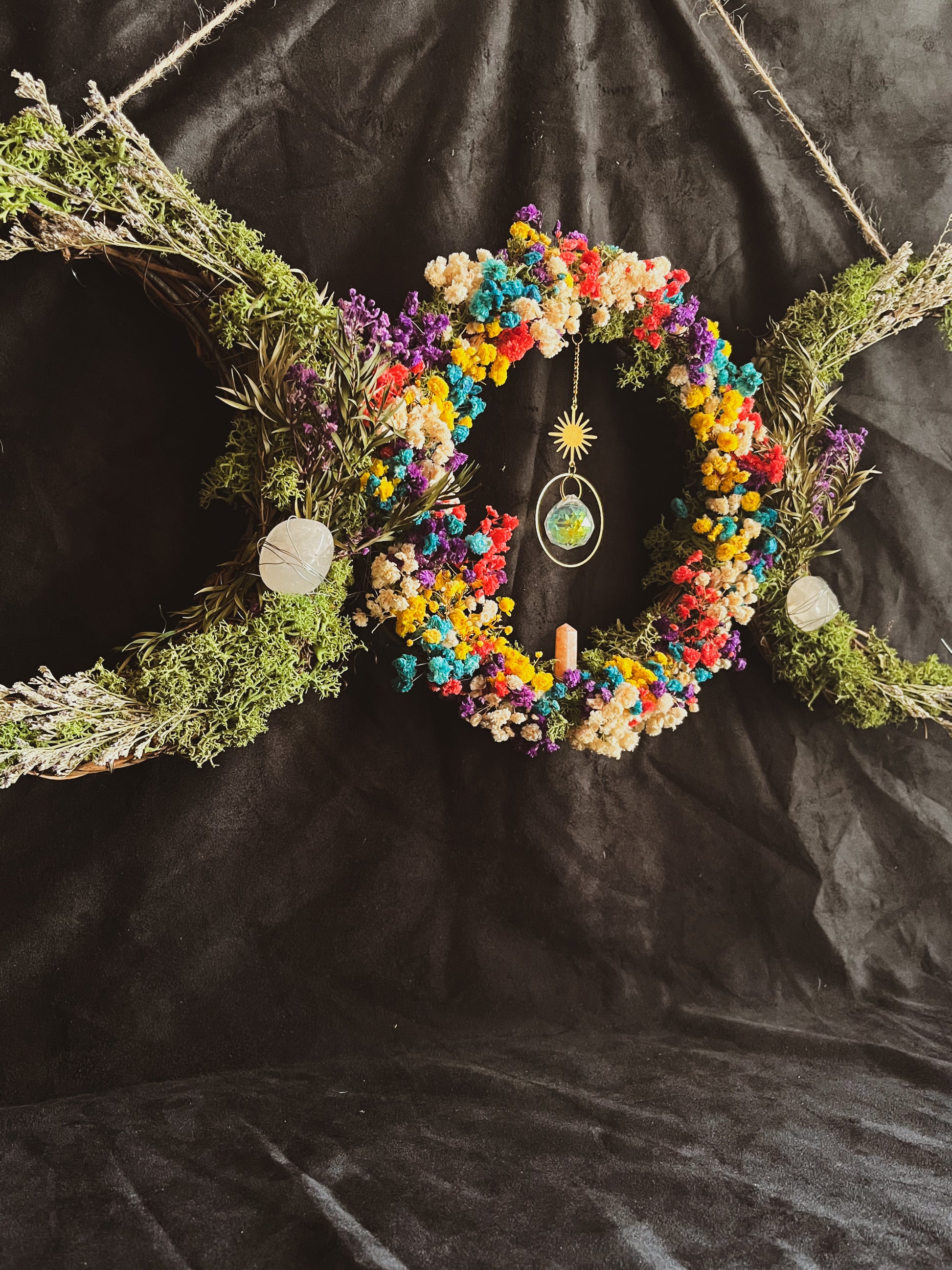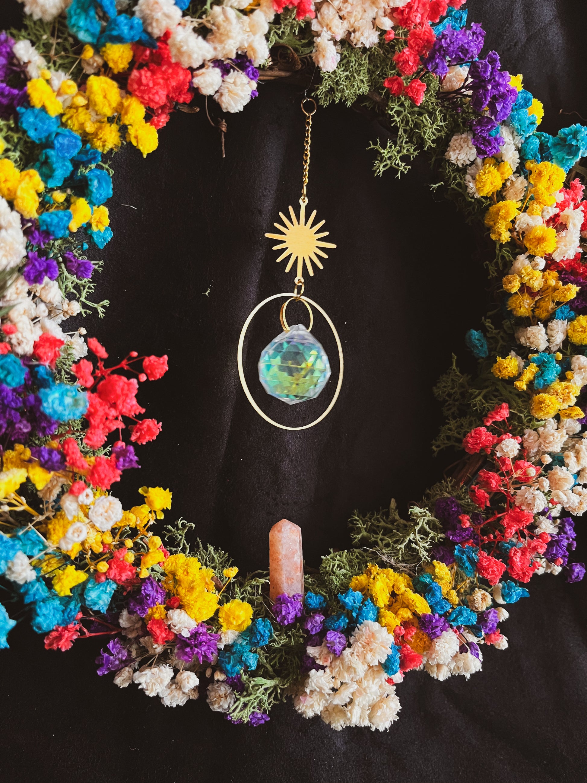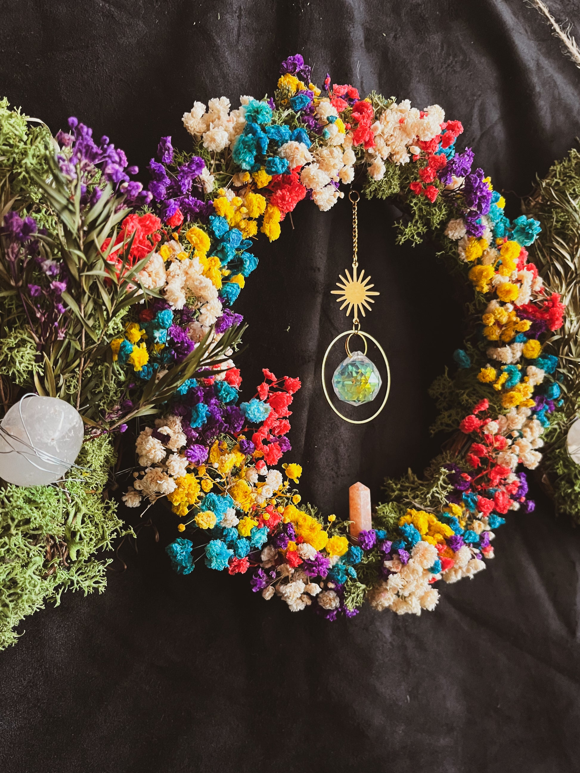He creado cada una de estas coronas con flores preservadas y minerales cuidadosamente elegidos, con la intención de que sean algo más que una pieza decorativa.