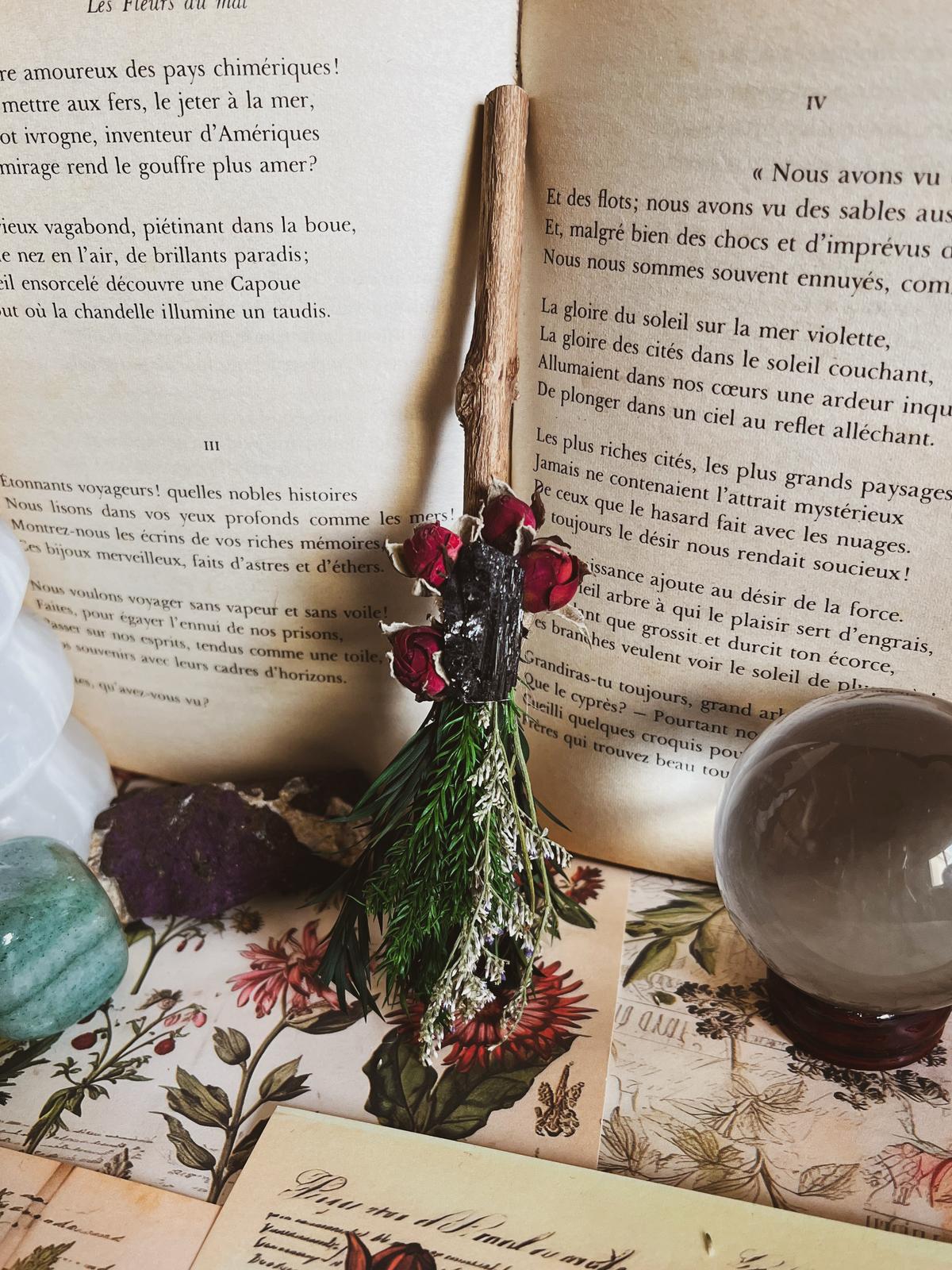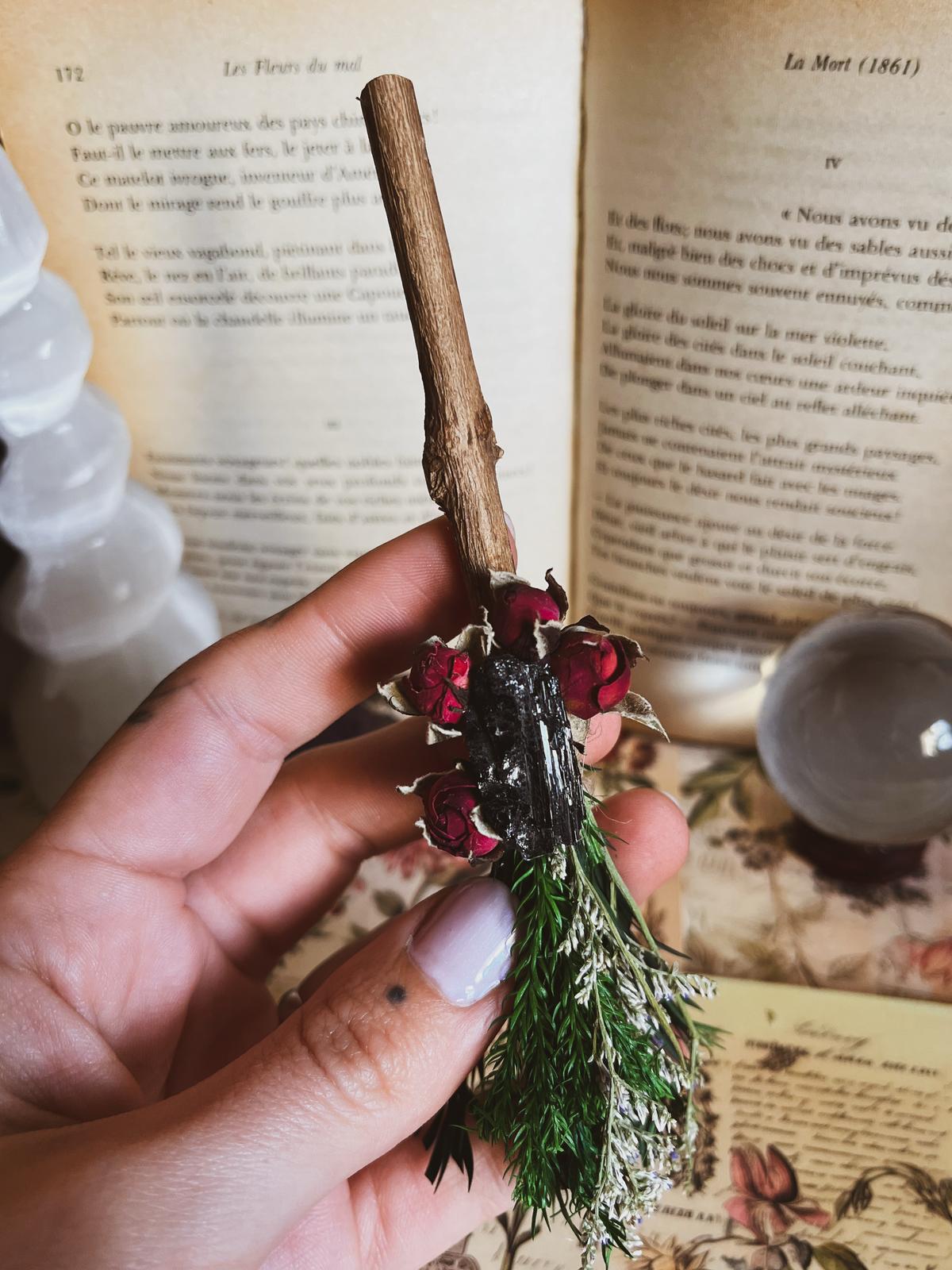 Escoba de bruja hecha a mano con elementos naturales. Colócala en la entrada de casa, en la pared o en un sitio de tu hogar que sientas que es especial. Es un símbolo de de renovación que representa la limpieza y expulsión de lo no deseado, tanto en el aspecto físico como en el energético.