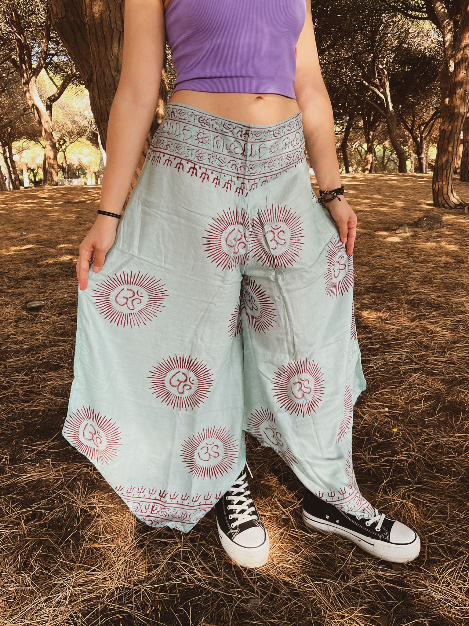 De corte es ligero y amplio con una medida a la altura de los tobillos.