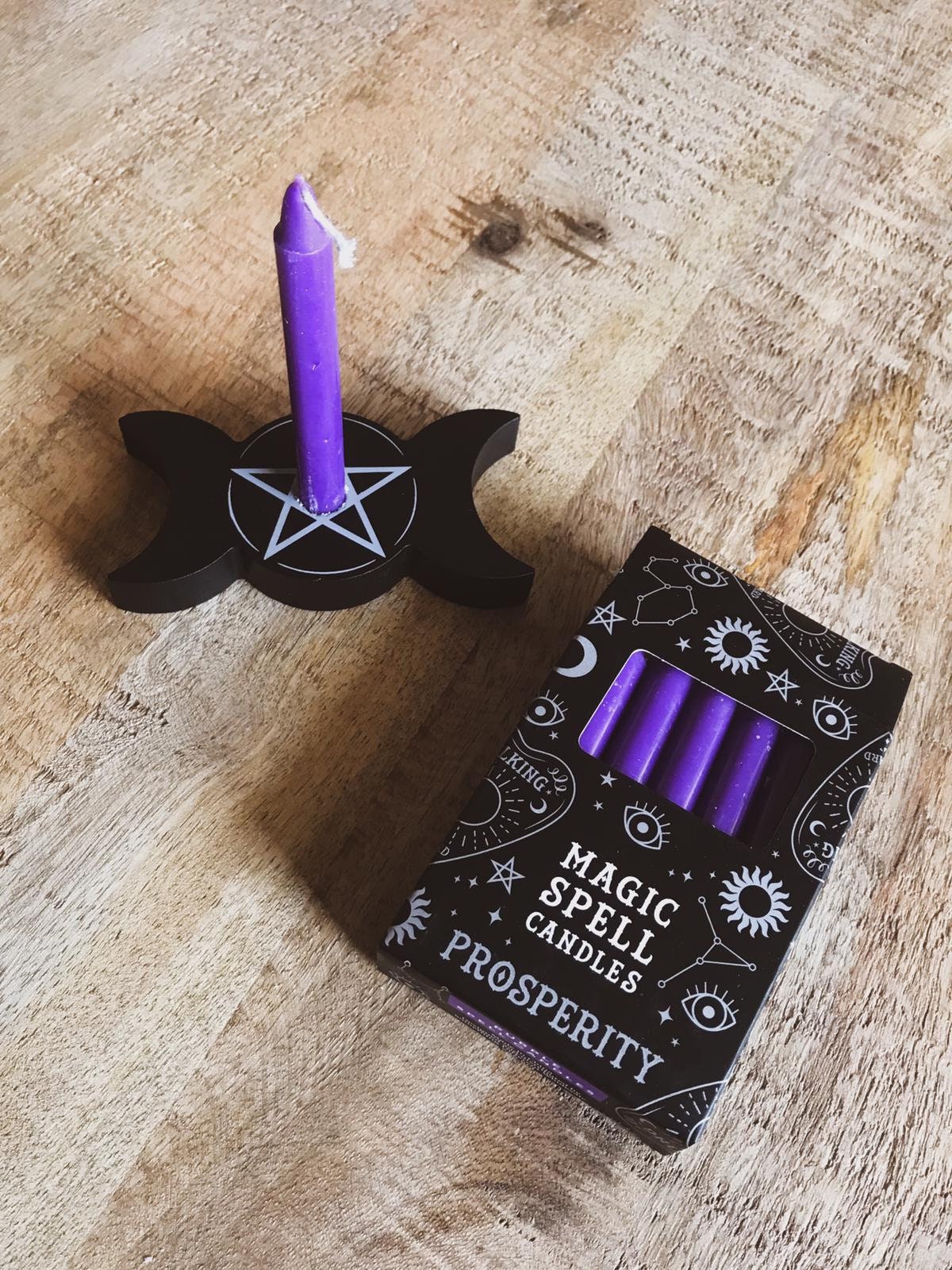 Este portavelas tiene el tamaño perfecto para sostener una sola vela de hechizo mientras se quema.