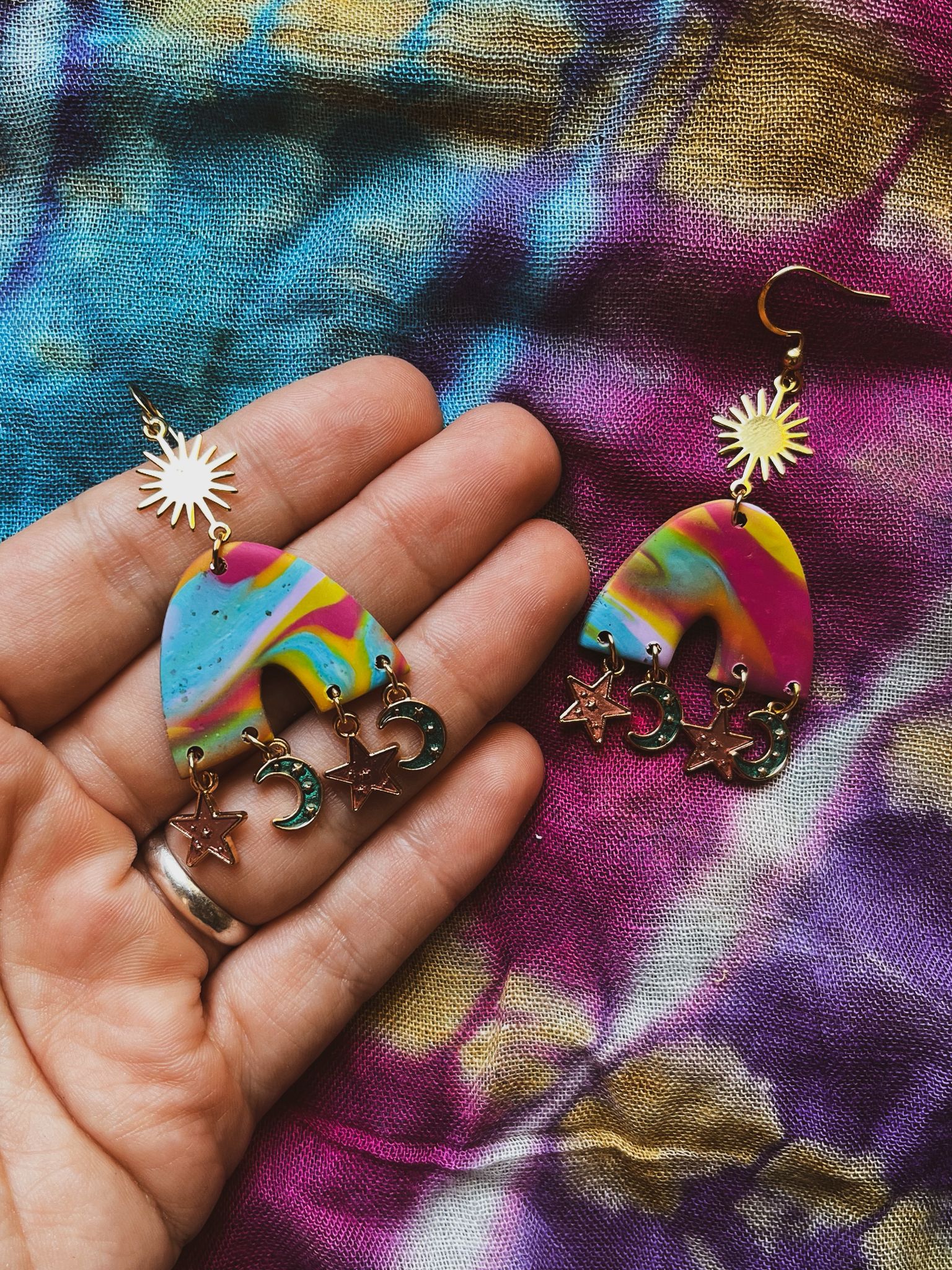 Pendientes de arcilla polimérica hechos a mano con amor y mucha magia para sentirte como la Diosa que eres!